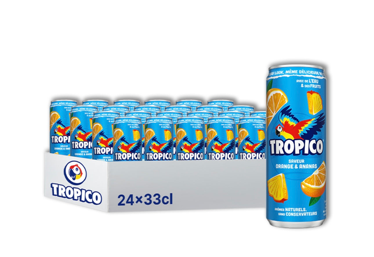 Tropico Original est une boisson rafraîchissante avec un mélange de jus de fruits d'orange, d'ananas et de citron. C'est une boisson fruitée et vivifiante, parfaite pour se désaltérer avec une saveur tropicale.